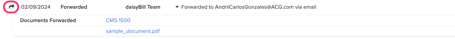 Click the ‘Arrow icon to view details of a ‘Forward Bill Submission’. For more information, see the Help Article: Forward Bill Submission.