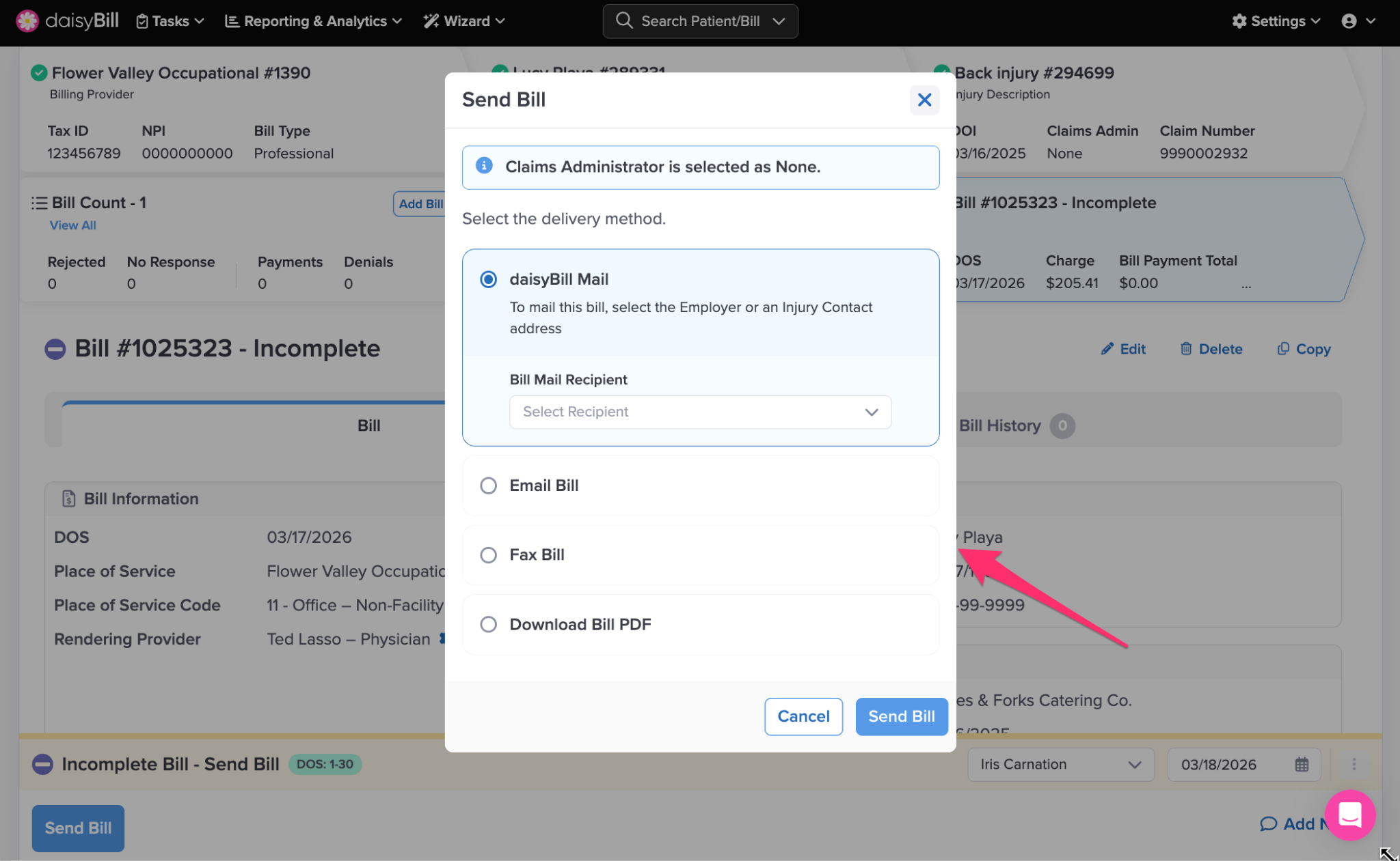 daisyBill submits electronically to all compliant Claims Administrators. For bills paid directly by an attorney, employer, or other non-Claims Administrator entity, daisyBill allows you to add the bill recipient’s details to the Injury so daisyBill can send the bill to the correct recipient.