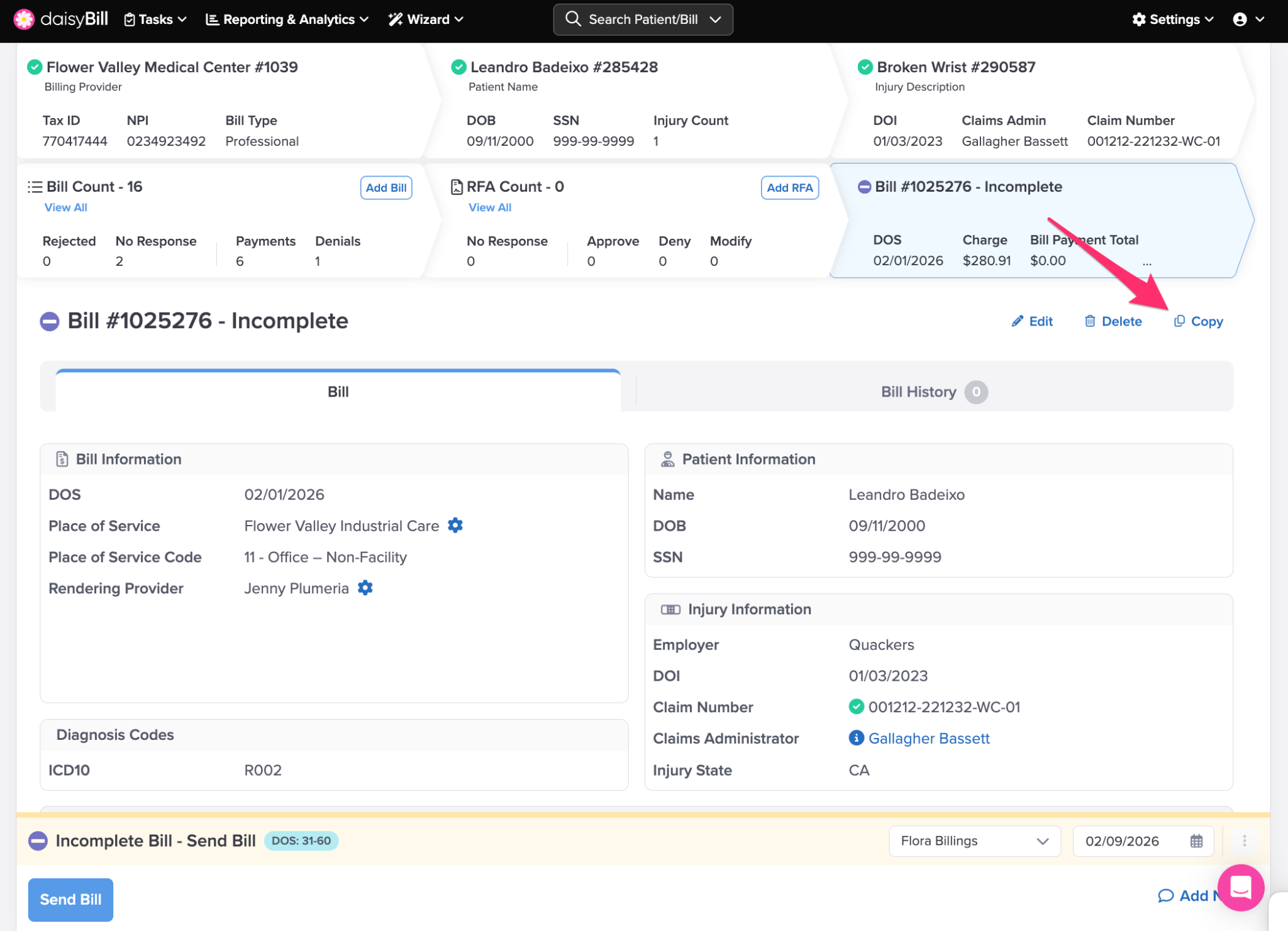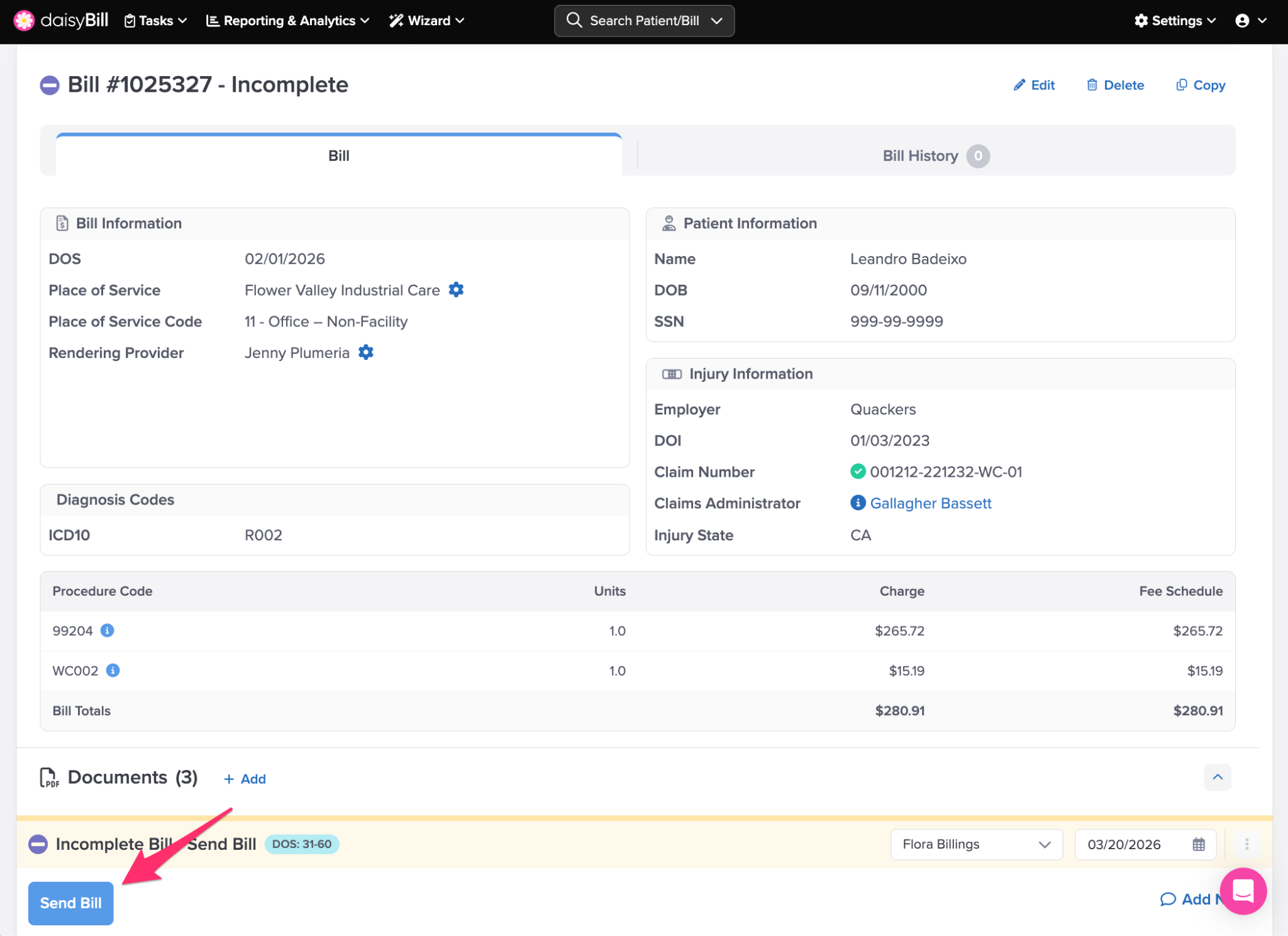 Step 5. (Situational) To submit the bill, click ‘Send’