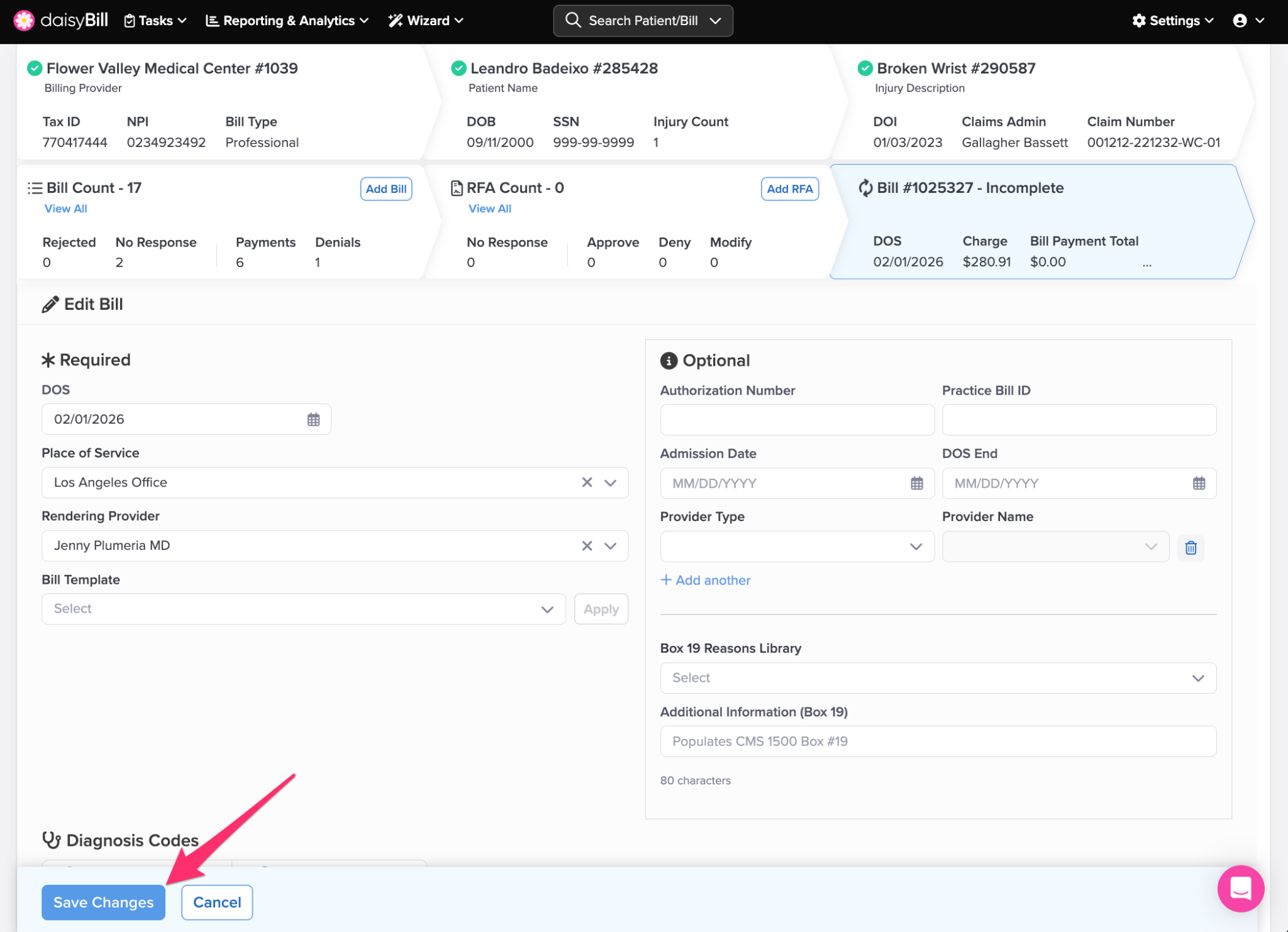 Step 4. Review the new Bill for accuracy, make adjustments, then click ‘Save Changes’