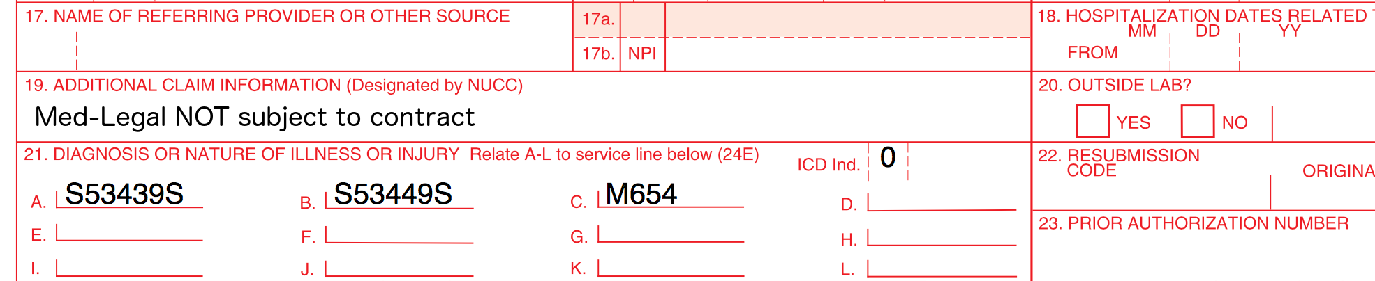 For electronically transmitted Bills, daisyBill transmits Box 19 to an equivalent field. For non-electronic submissions, daisyBill prints the information in Box 19.