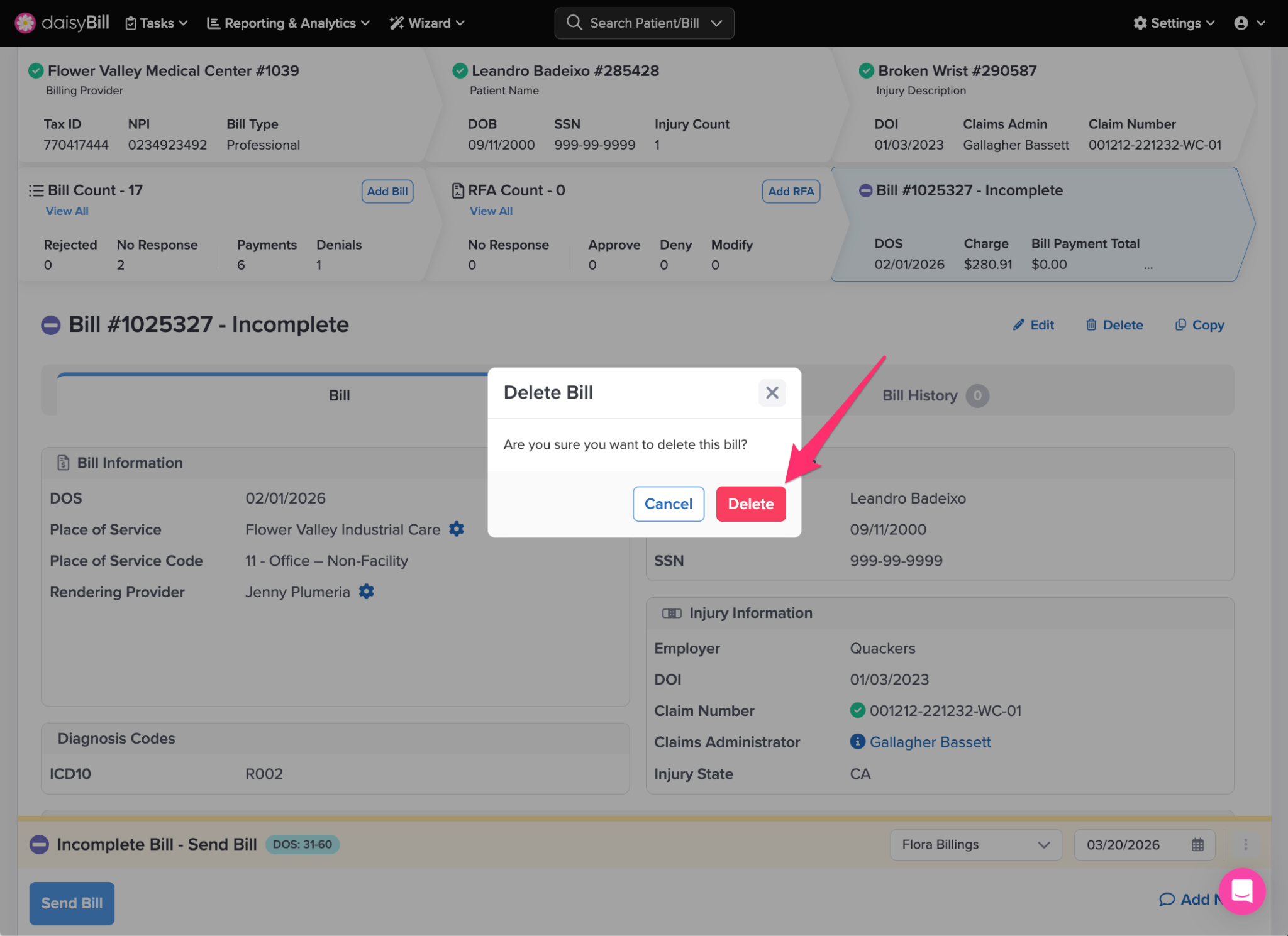 Step 2. Click ‘Delete’ to confirm the Bill Deletion