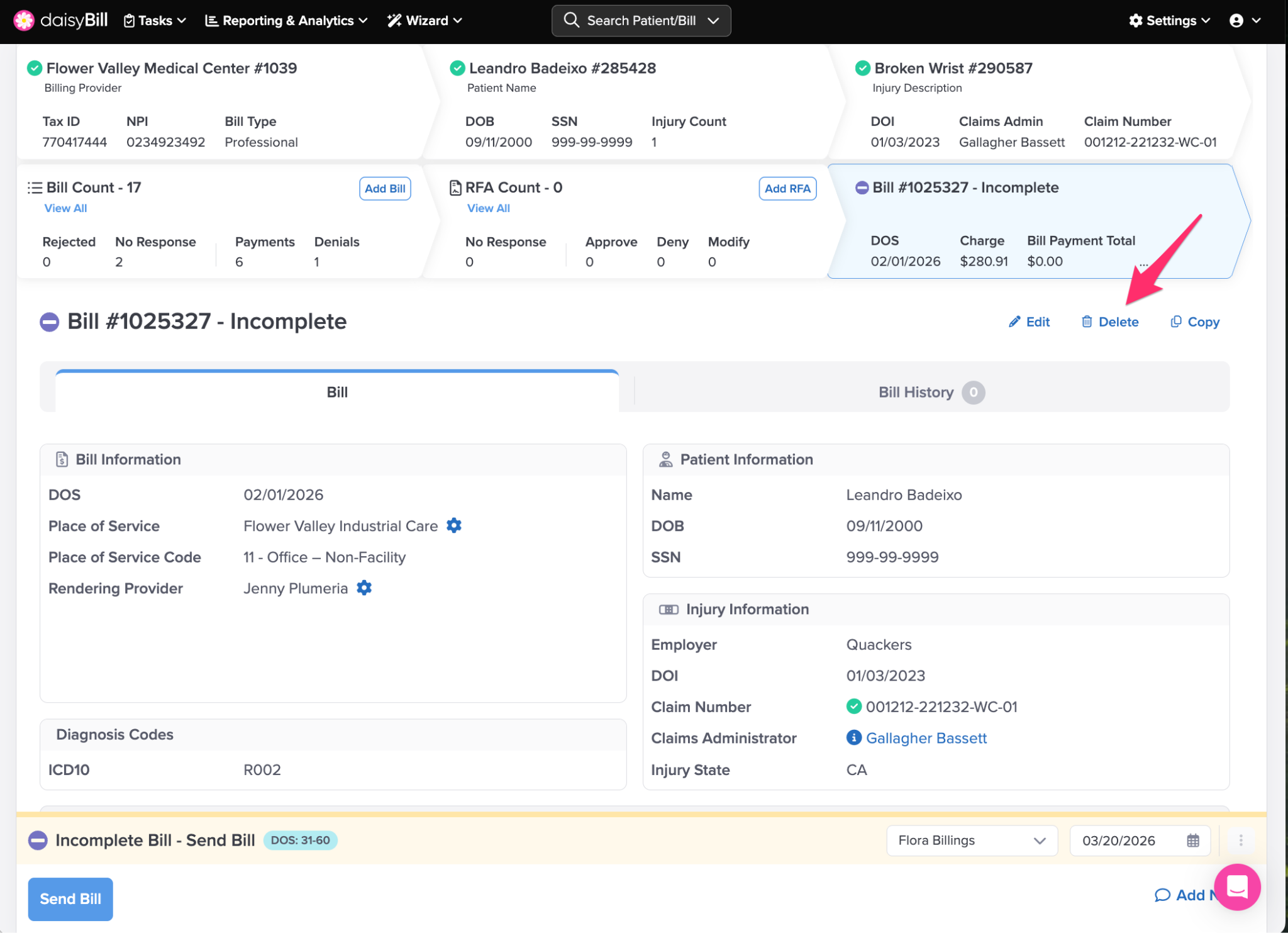 Follow the steps below to delete unsubmitted Bills from daisyBill. Note that submitted Bills cannot be modified, deleted, or rescinded.