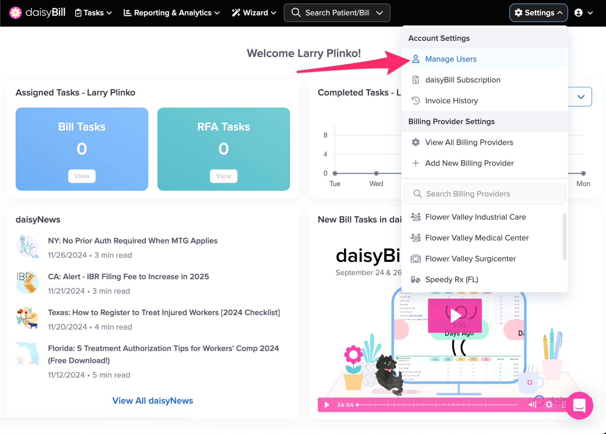 Use the Manage Users Setting to invite, update, and manage User roles across your daisyBill account.