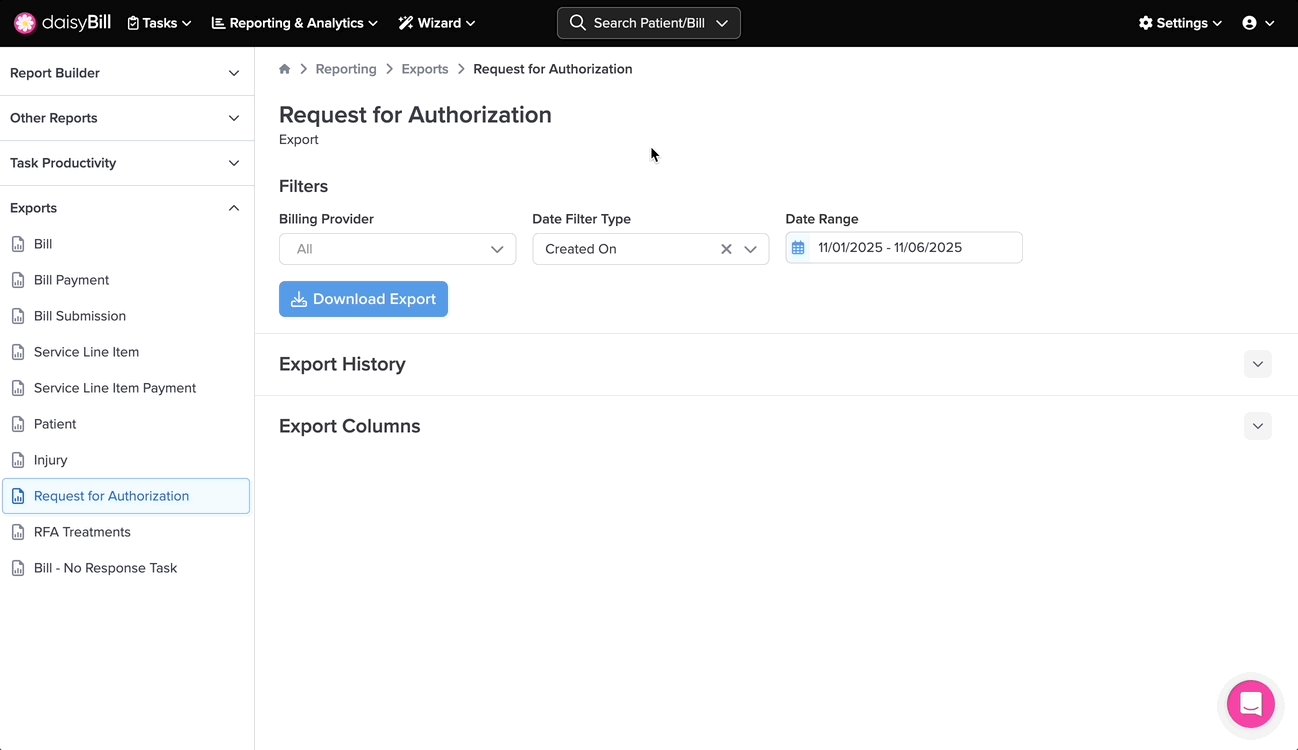 The Request for Authorization Export provides detailed information on all your Bill RFAs.