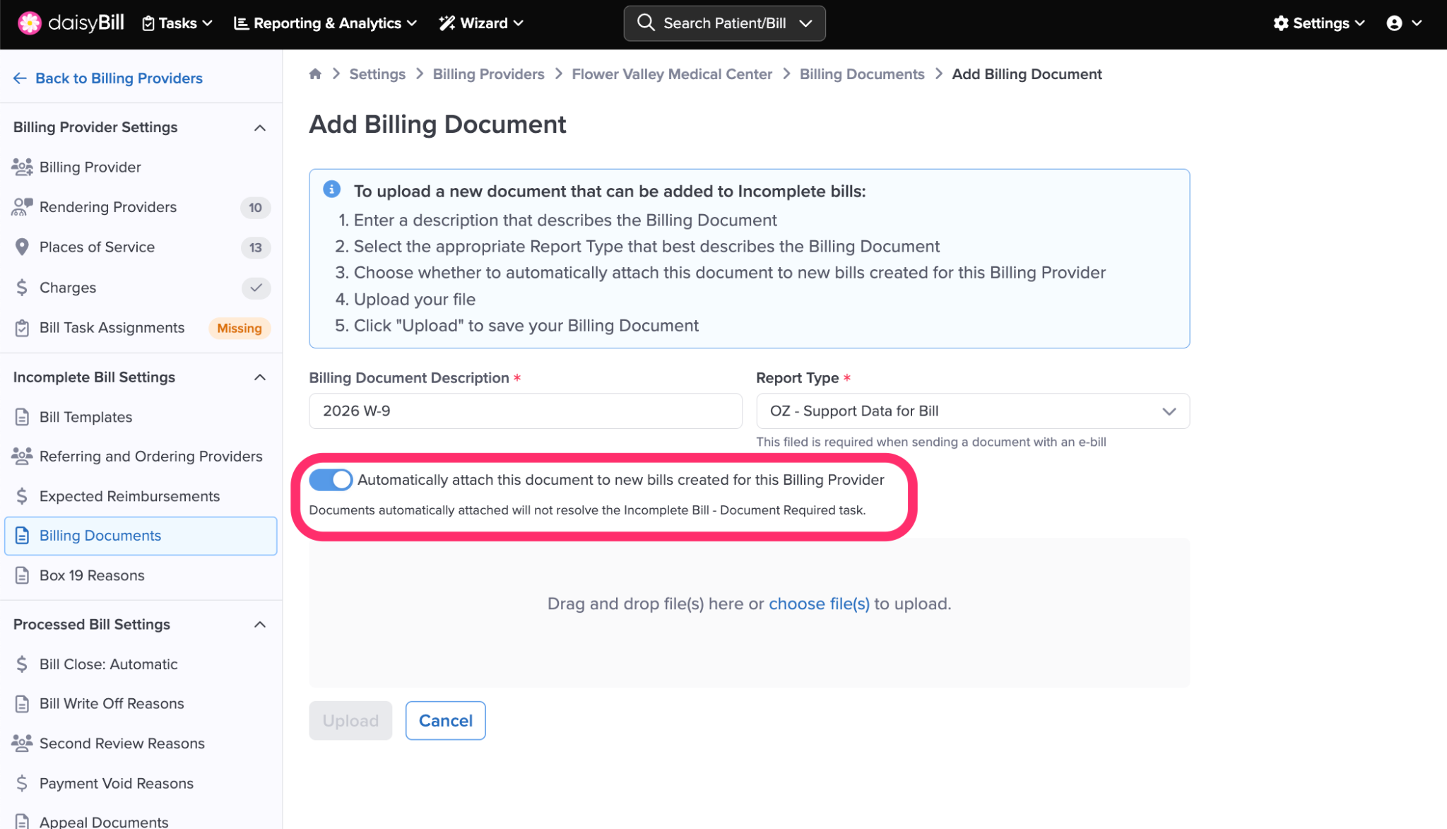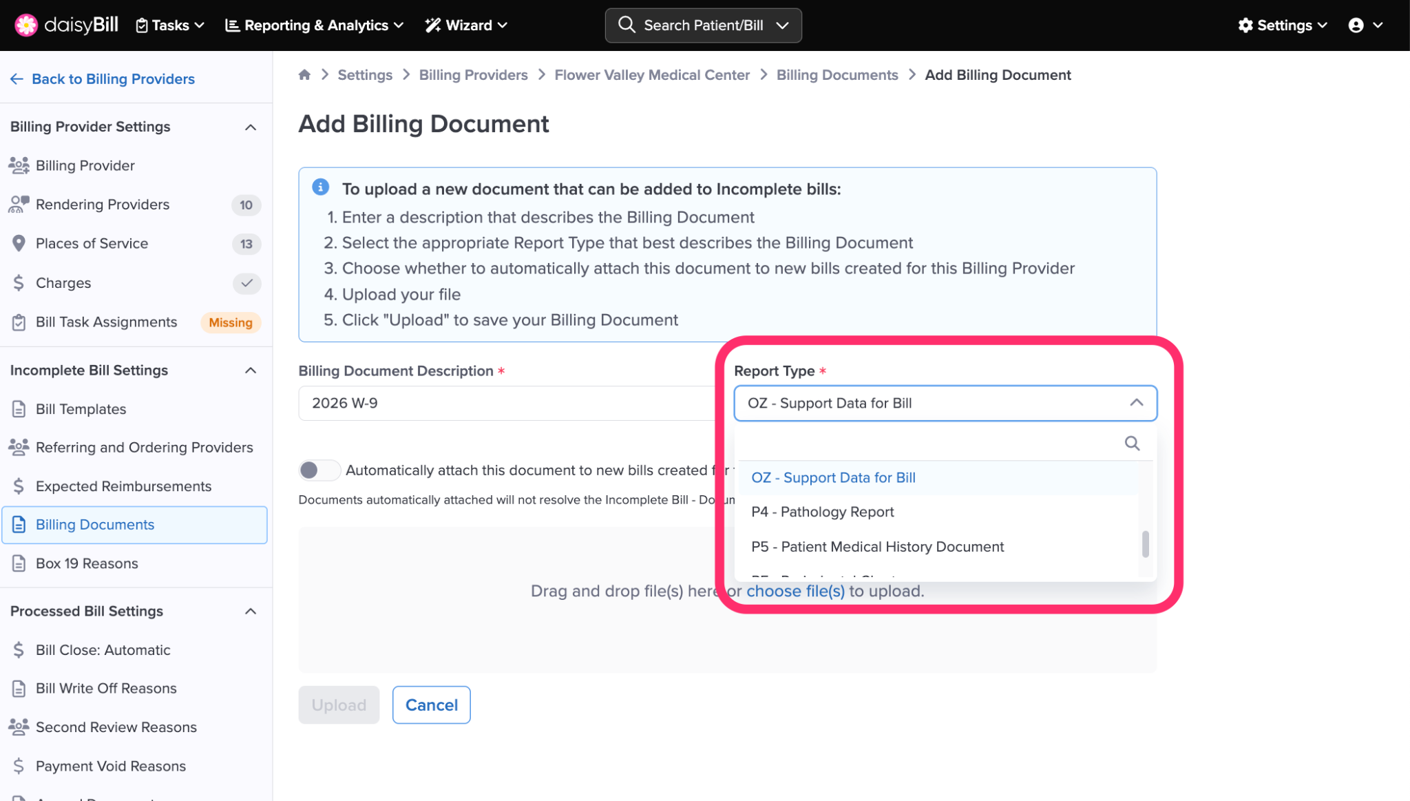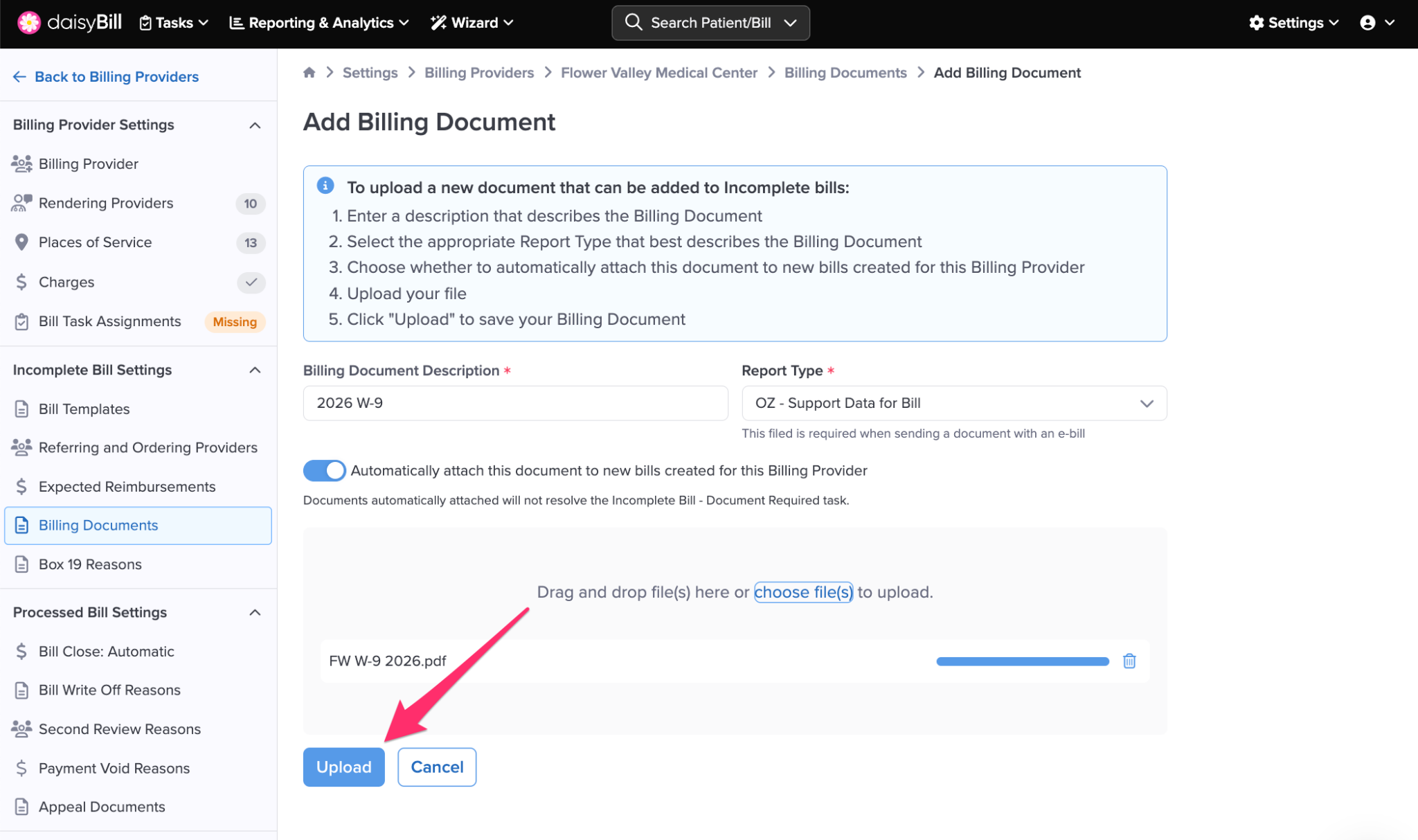 Step 7. Upload Billing Document
