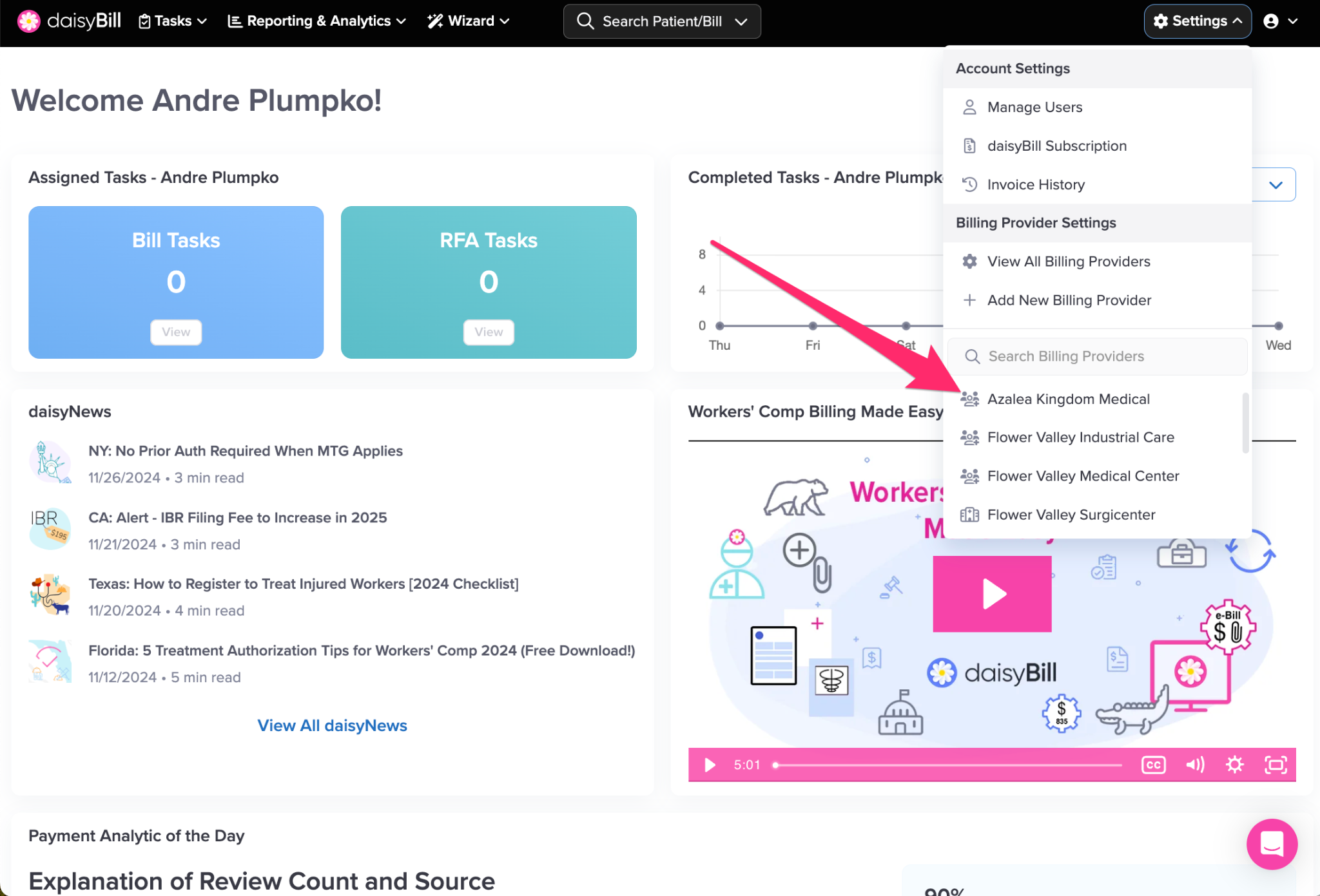 This will navigate directly to the specified Billing Provider.