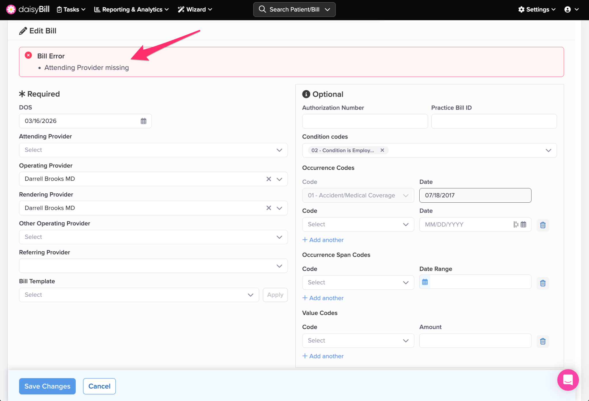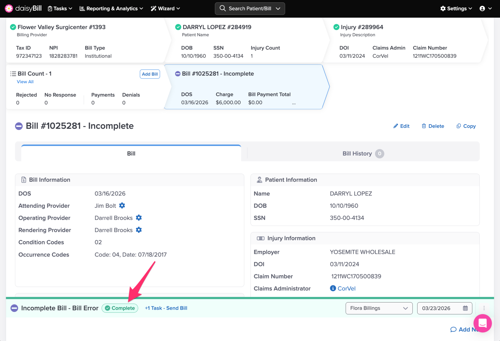 daisyBill scrubs all bills assigned an Incomplete Status for errors that could prevent payment.