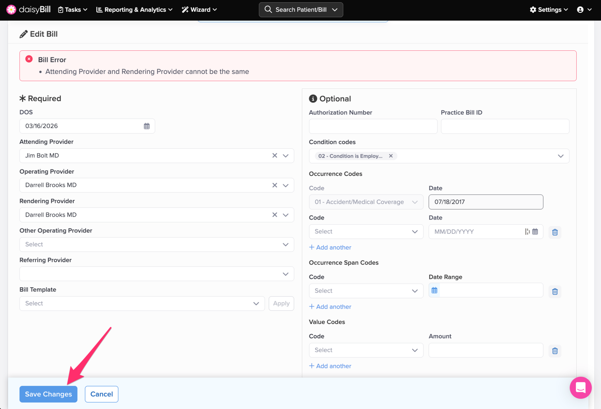 Clicking ‘Save Changes’ navigates you back to the Bill page.