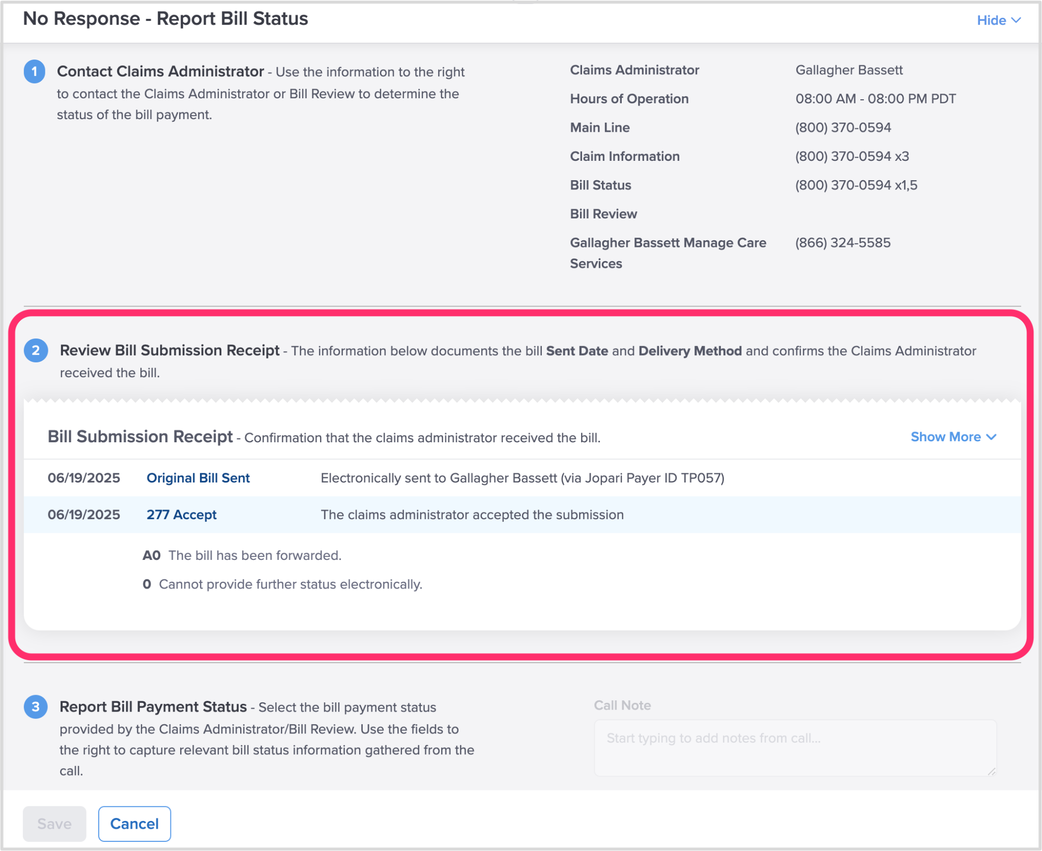 Step 3. Review the Claims Administrator’s proof of bill receipt