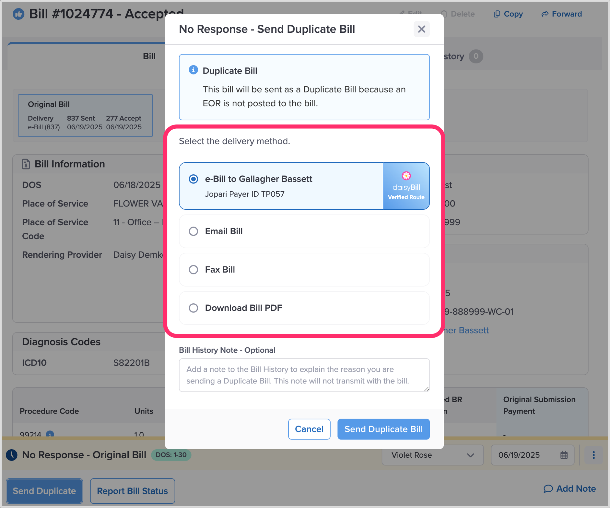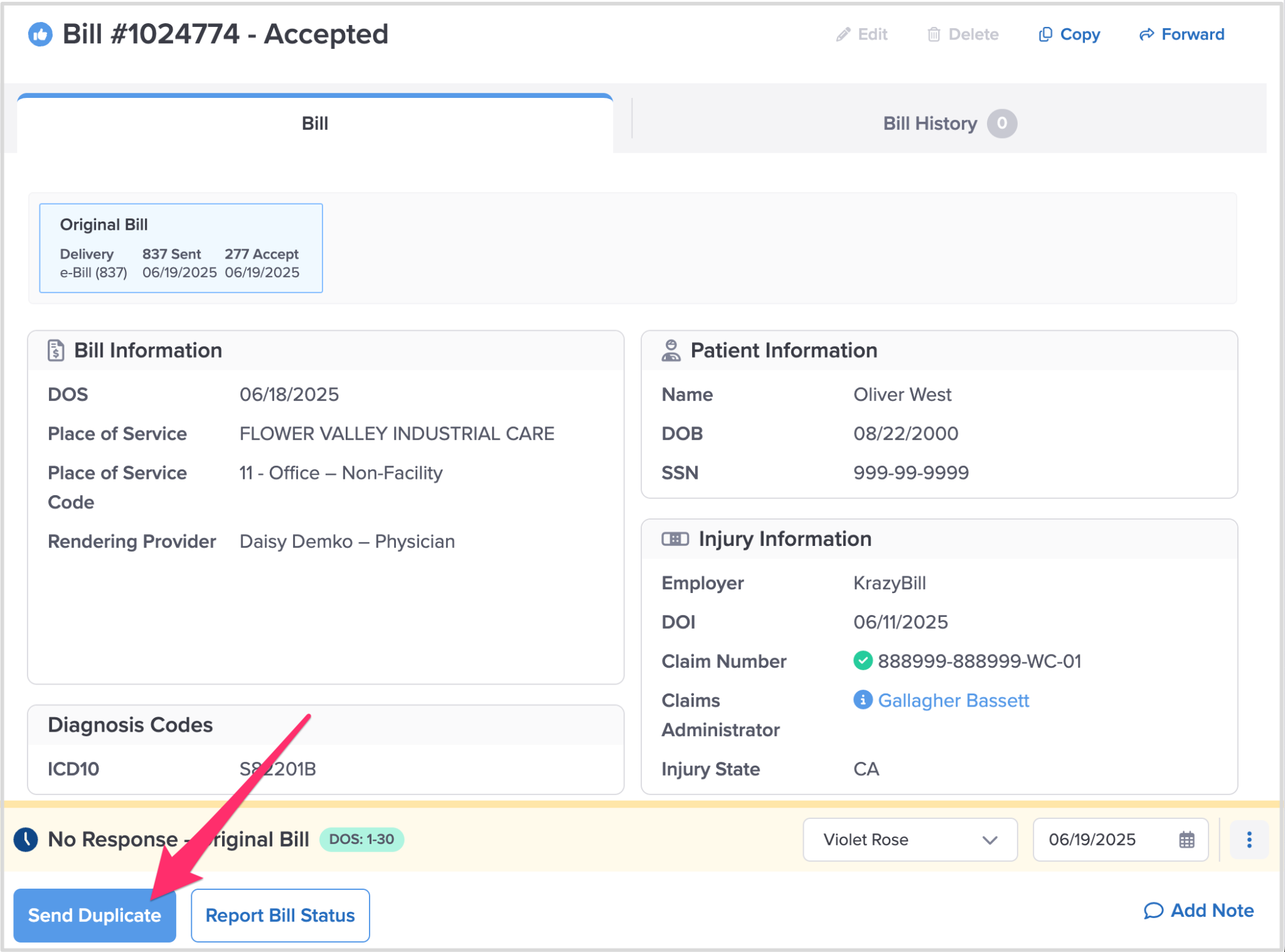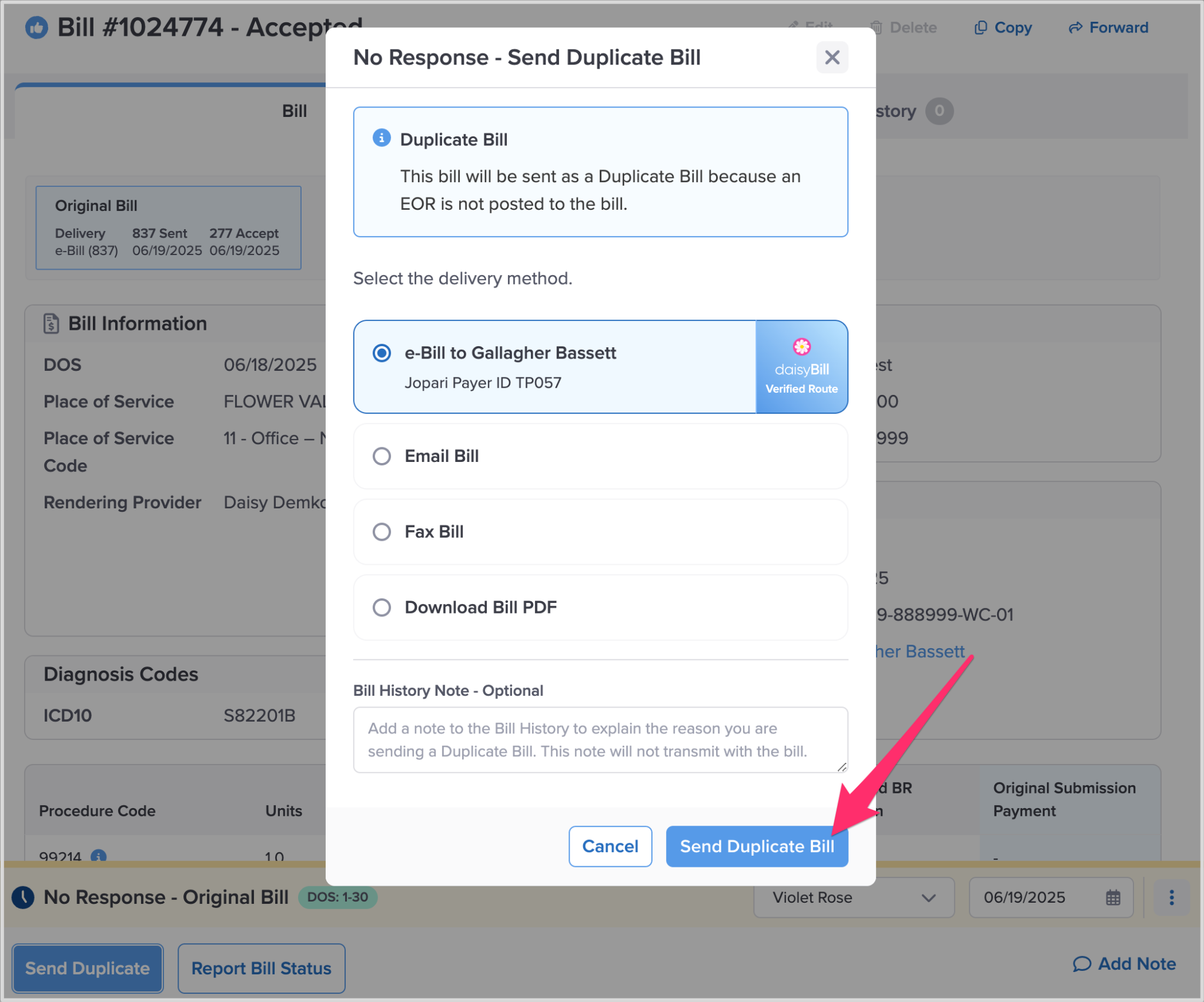 Step 3. Click ‘Send Duplicate Bill’