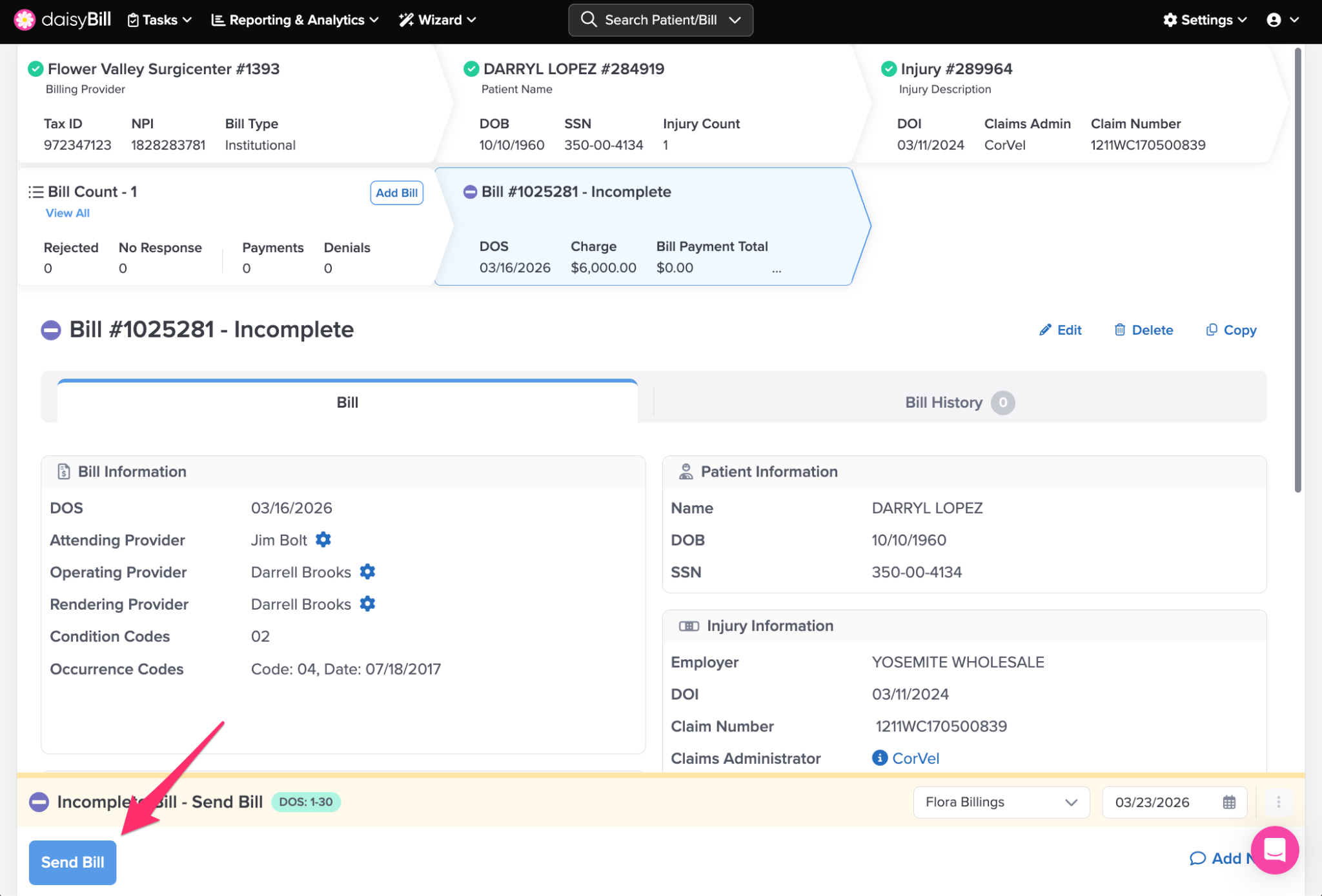Step 3. Click ‘Send Bill’