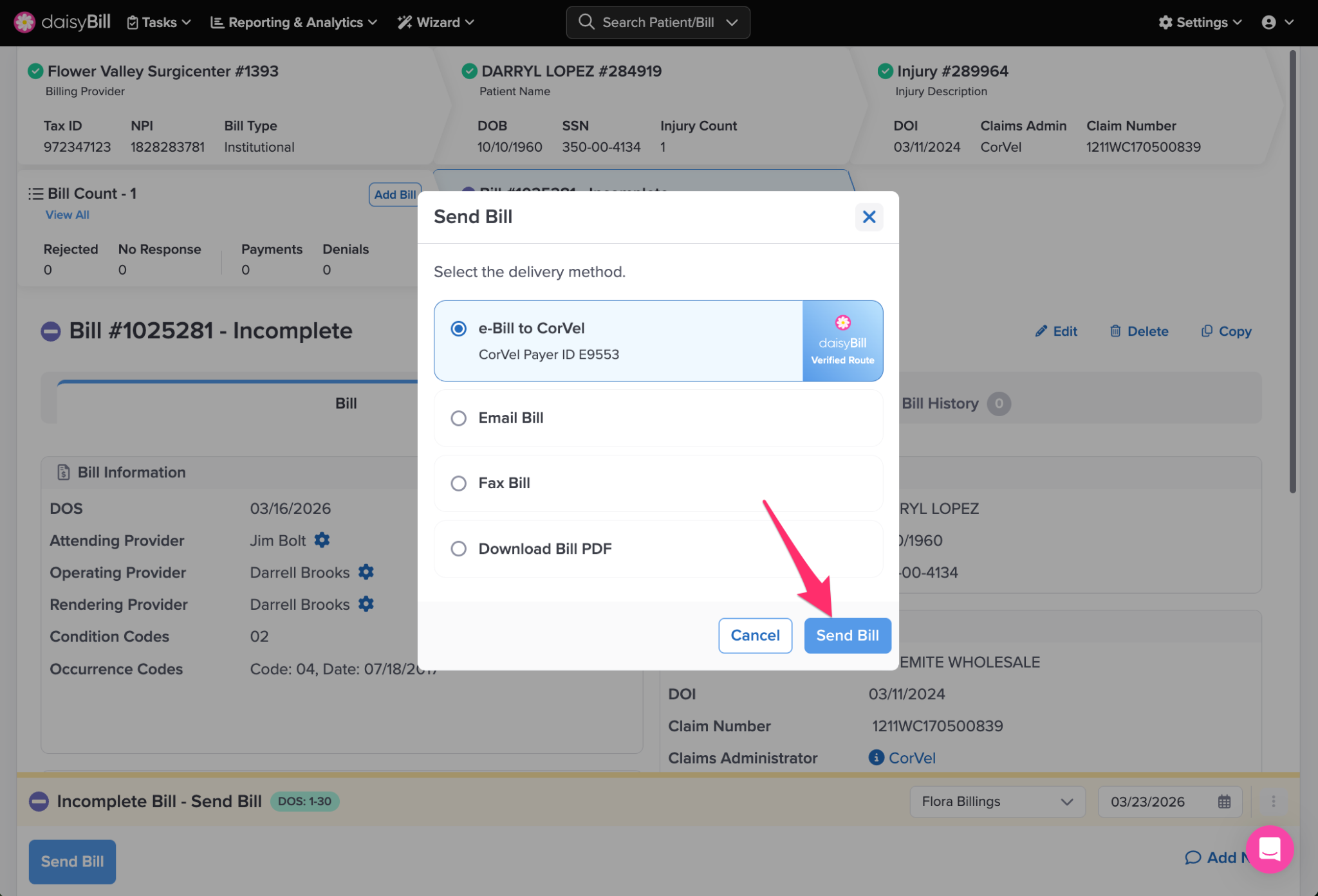 daisyBill immediately sends the Bill and supporting medical documents to the recipient. Note that this action cannot be undone.