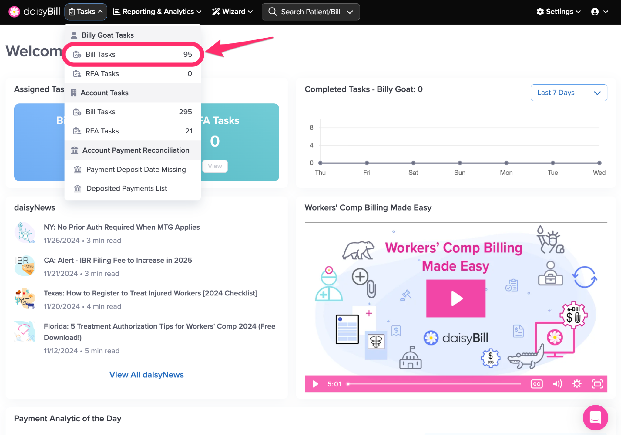 daisyBill technology monitors all bills as they progress through each Status of their Payment Cycle. When a bill requires attention, daisyBill assigns a Bill Task that your team needs to complete to move the Bill forward in its Payment Cycle.