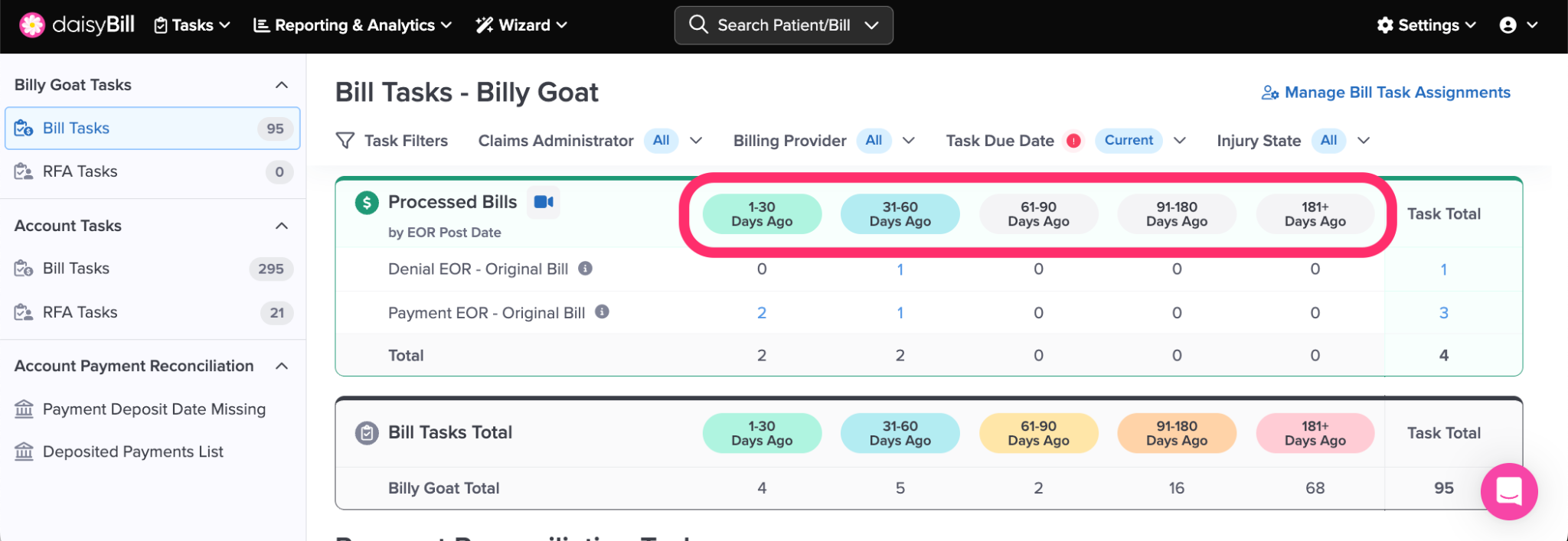 daisyBill groups Processed Bills by Explanation (EOR) Post Date.