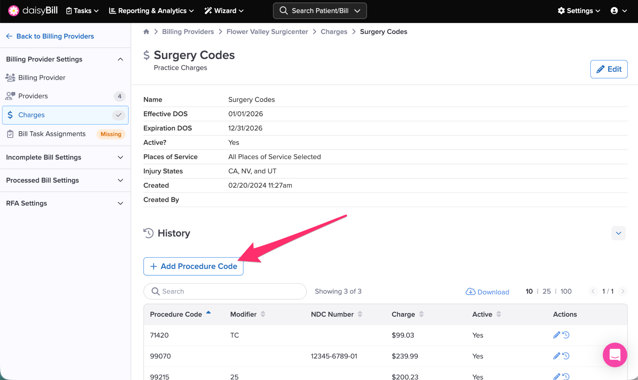 Step 16. To add a ‘Procedure Code’, click ‘Add Procedure Code’