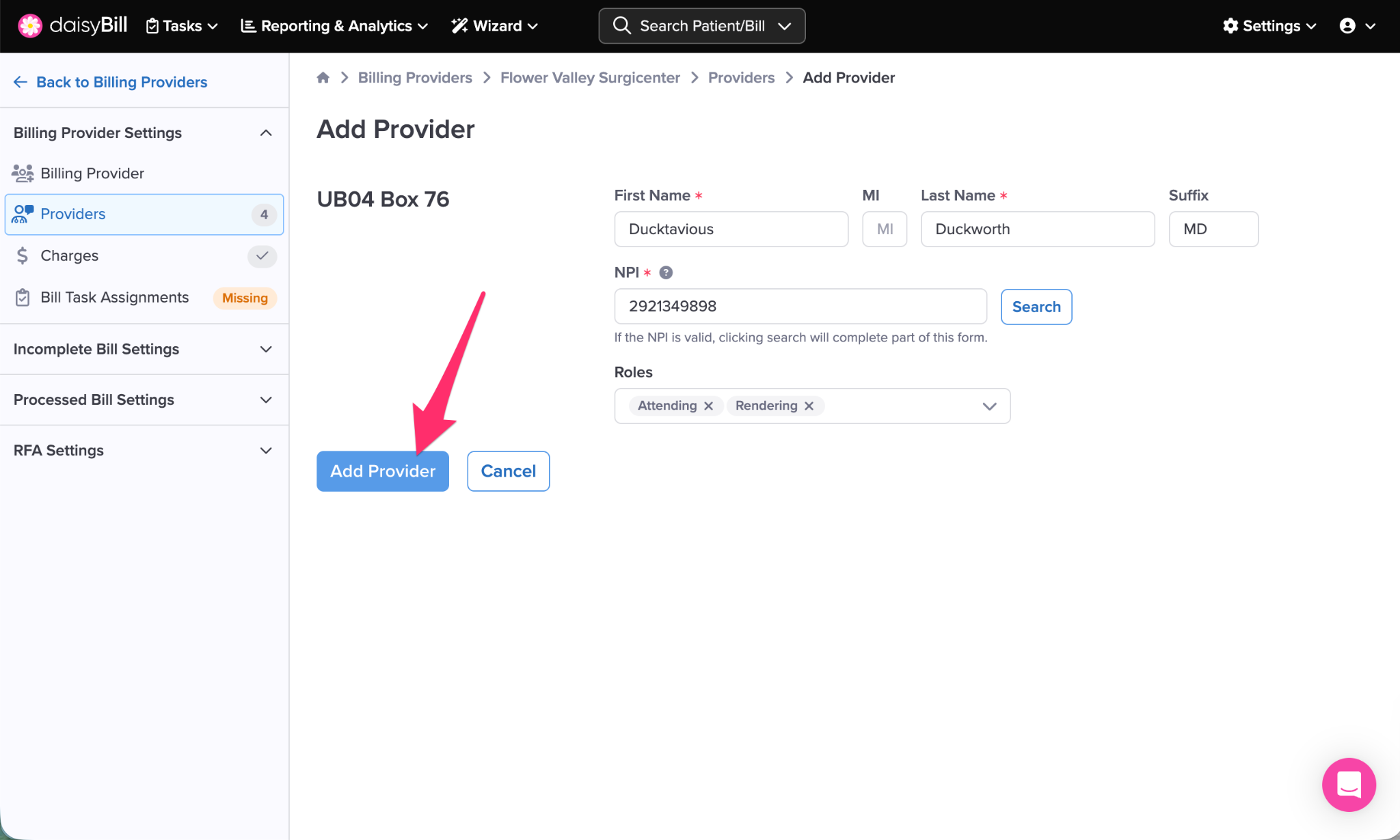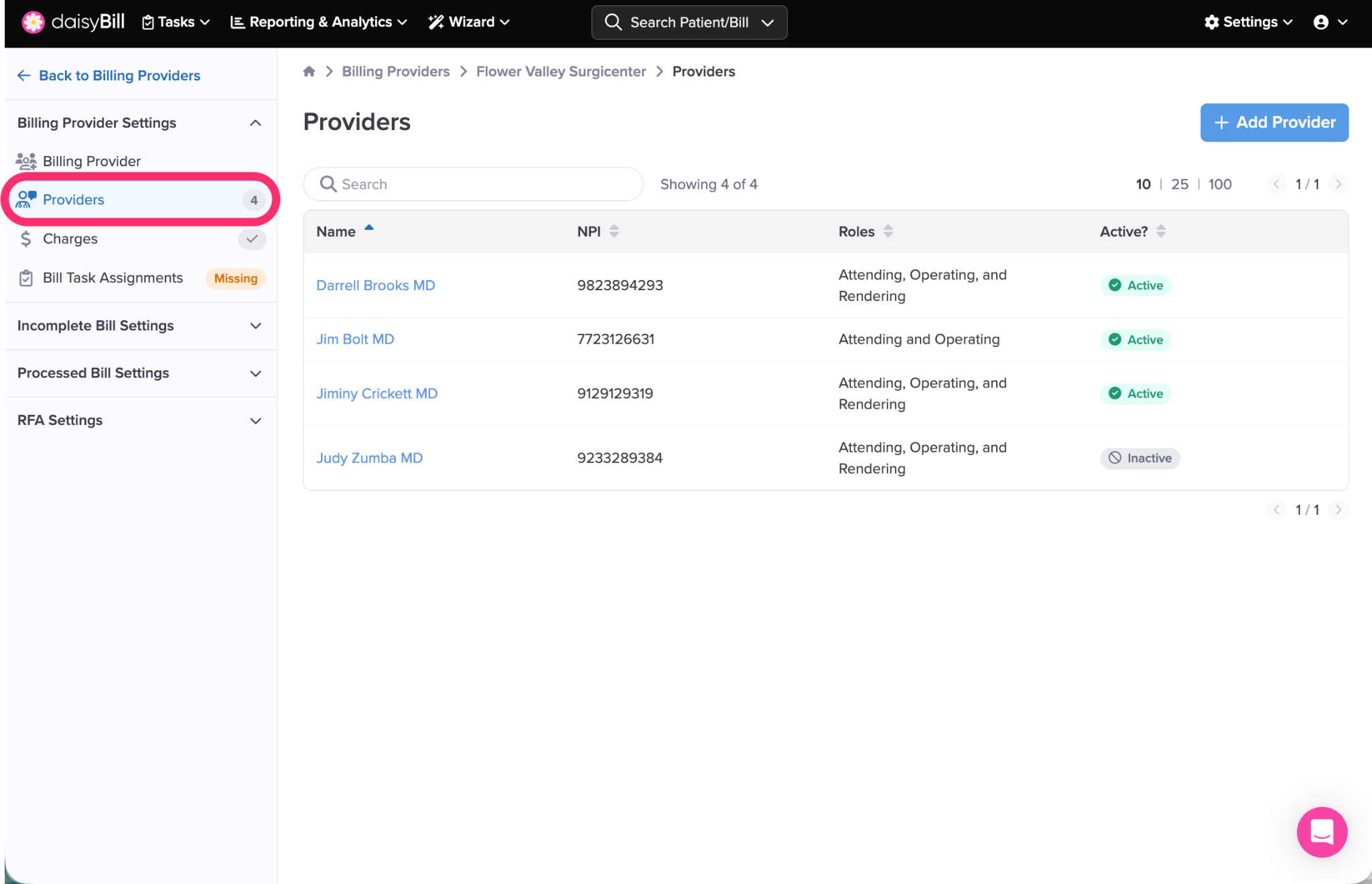 daisyBill makes it easy to view and add required information for each Provider associated with a Billing Provider.