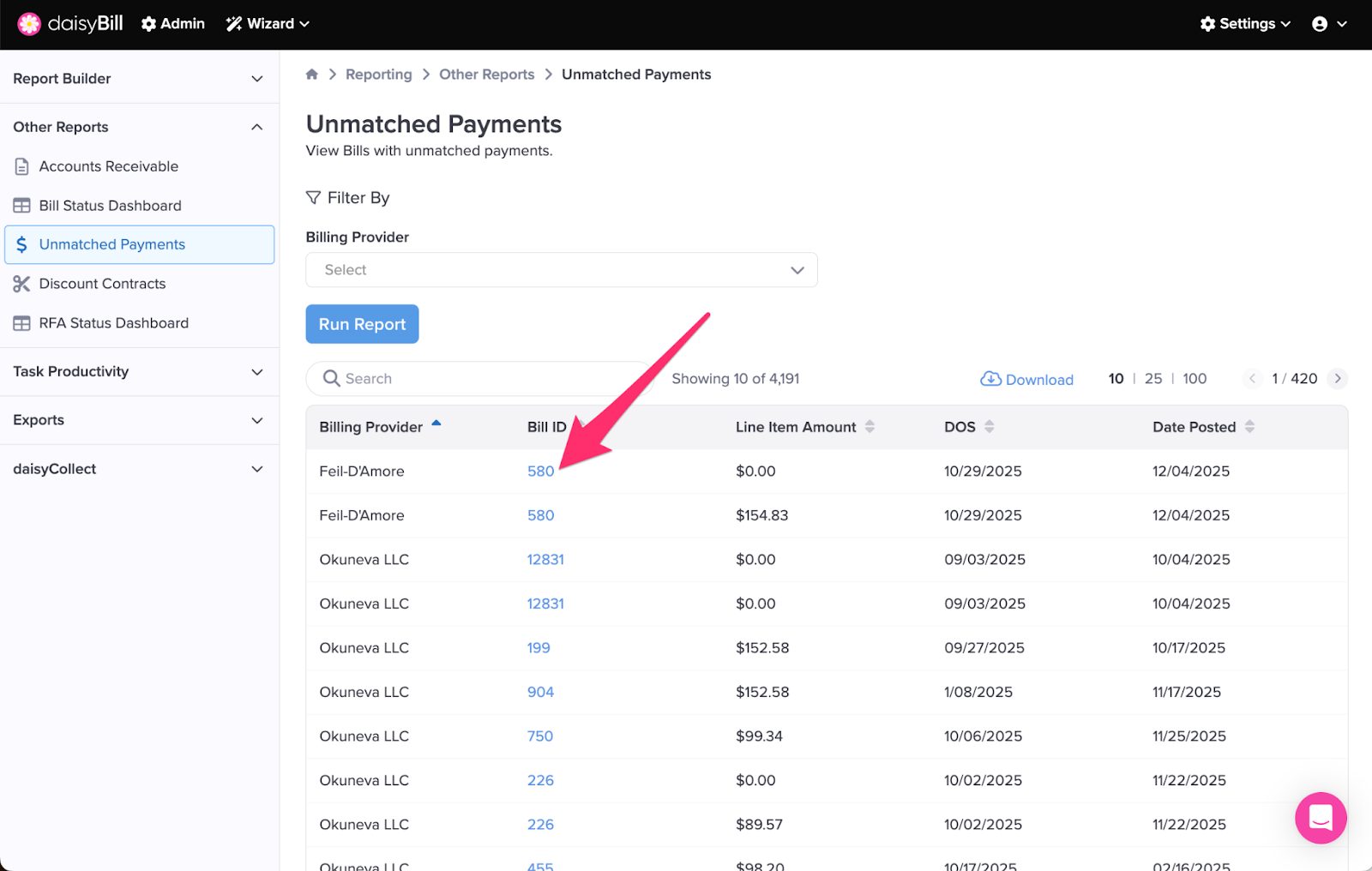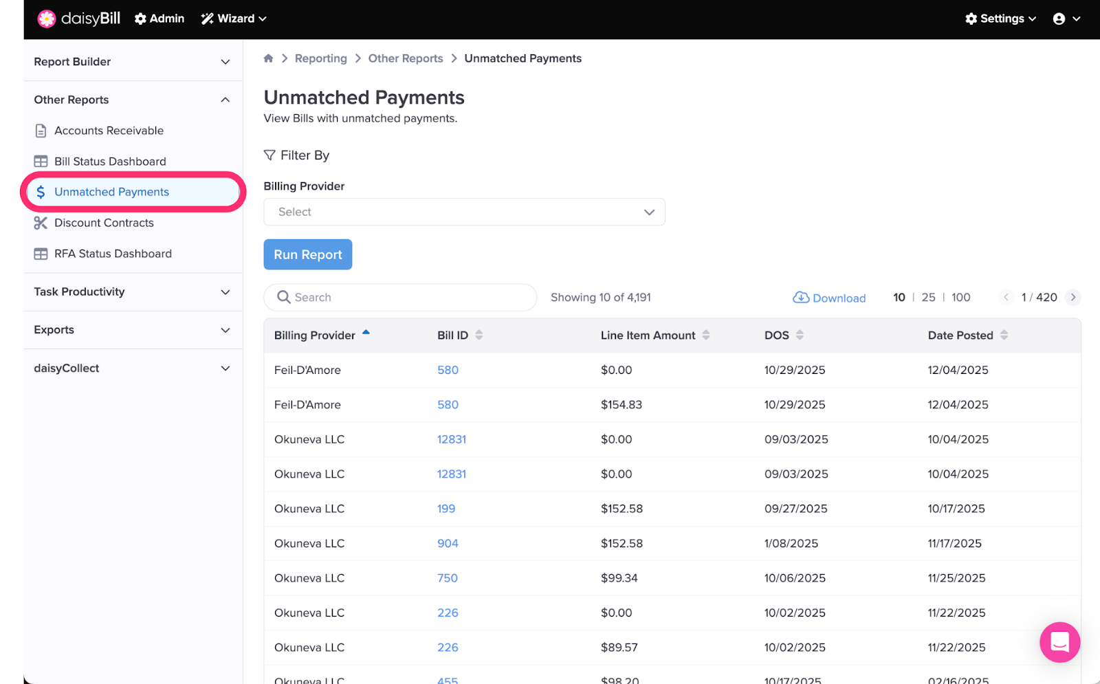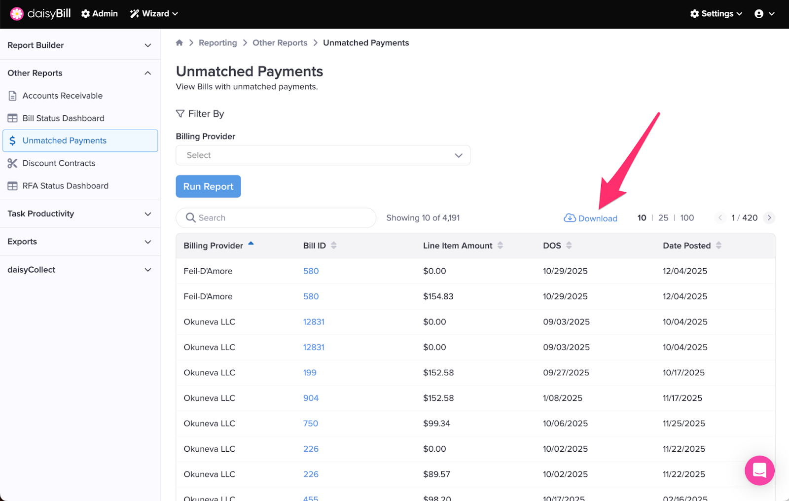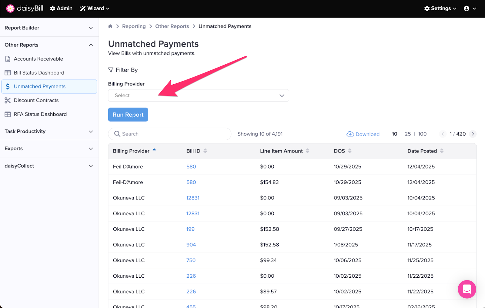 Step 3. Click ‘Unmatched Payments’