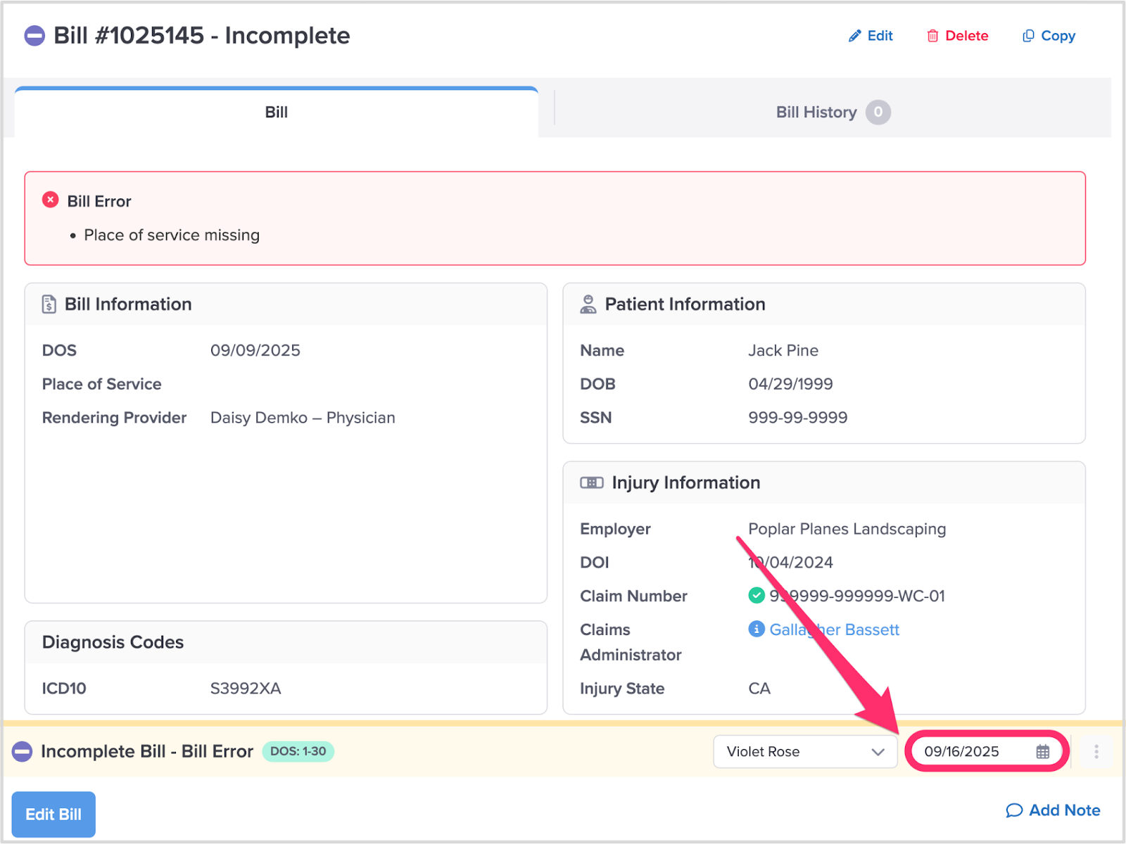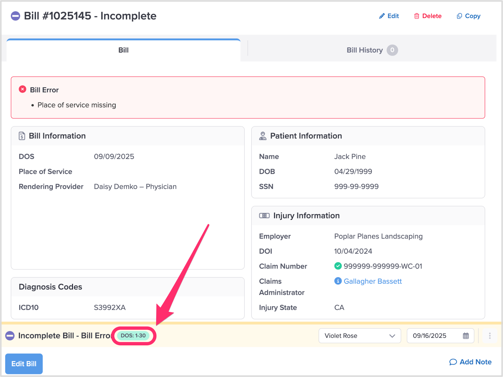 Example 1: For all Bills with an Incomplete Bill Status, daisyBill groups your Bill Tasks according to the bills’ Dates of Service.